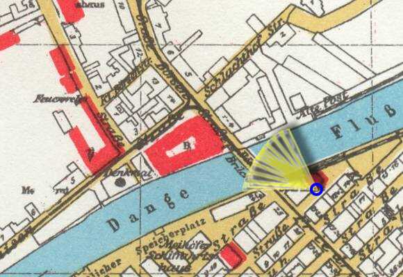 | Šaltinis: | Übersichts-Plan der Stadt Memel Stand 1923, 1985 Nachdruck von Druckerei Probst, Höchst im Odenwald - Günter Maeding (früher Memel). |
