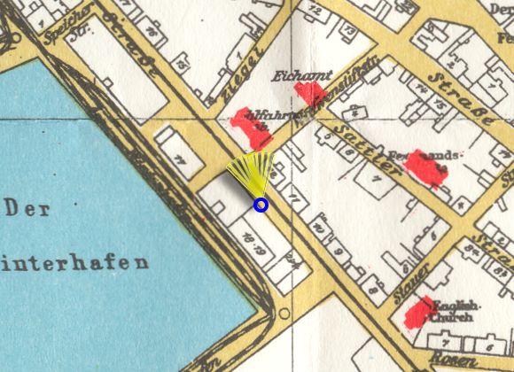 | Šaltinis: | Übersichts-Plan der Stadt Memel Stand 1923, 1985 Nachdruck von Druckerei Probst, Höchst im Odenwald - Günter Maeding (früher Memel). |