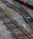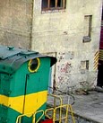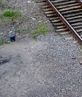 Dieses im Jahr 2003 aufgenommene Bild stellte Graham Williams zur Verfügung. Die Aufnahme belegt, daß das Stellwerksgebäude den Zweiten Weltkrieg überstanden hatte. Es befand sich noch für mehr als ein halbes Jahrhundert an Ort und Stelle nahe der stählernen Brücke beim Bahnhof (siehe unteres Bild). |