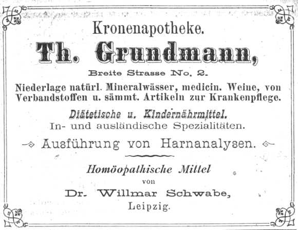 Hier eine Anzeige der Kronen-Apotheke, die auf dem historischen Bild gleich vorne rechts zu sehen ist.