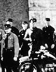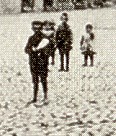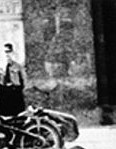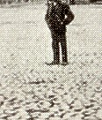 Die Läden in dem Häuserblock am nordöstlichen Ende des Friedrichsmarktes (Nr. 20 links und Nr. 18/19 rechts) wurden im Laufe der Zeit von wechselnden Kaufleuten benutzt. Im rechten Teil hatten seit Mitte der 1920er die Gebrüder Puhn ihr Geschäft, bis sie die Stadt wegen der Judenverfolgung durch die Nazis verließen. Sie handelten, wie man Memels Adreßbüchern entnehmen kann, mit Papier- und Galanteriewaren oder auch sogen. Kurzwaren. Schließlich betrieben sie hier auch eine kleine Buchdruckerei. Aron Puhn, der im Adreßbuch von 1935 nicht mehr wie zuvor als Kaufmann sondern als Lehrer eingetragen war, hatte mit seiner Frau Yocheved die beiden Töchter Tzira und Aviva. Das unten stehende Bild, das nach dem Einzug der deutschen Wehrmacht im März 1939 enstand, zeigt Aron Puhn mit Frau und Kindern beim Verlassen der Stadt.
