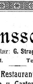 Die folgende Anzeige findet sich im Adreßbuch von 1909. Zu dieser Zeit war Gustav Stragies der Besitzer. Um das Jahr 1930 schloß das Restaurant. Mit der Errichtung der Memelländischen Seifenfabrik gleich nebenan wurde das Anwesen zu einem Bestandteil der neuen Fabrik.