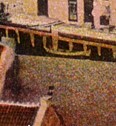 Bei dem Blick in den Hof des Grundstücks Börsenstraße 1-4 kann man sich fragen, zu welchem Zweck die eingeschossige Häuserreihe diente. Befanden sich hier die Lagerräume der an der Börsenstraße gelegenen Geschäfte? Oder waren es Wohnhäuser, wie man anhand der unten stehenden Aufnahme vermuten könnte? Sie lagen an der kurzen, zur Dange führenden Alte-Post-Straße, gehörten aber sicherlich mit zum Gebäudekomplex Börsenstraße 1-4.