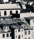 In der zweiten Reihe steht das Wohnhaus Lotsenstraße 7c, siehe "1". Dieses Haus gibt es heute nicht mehr. Über sein Grundstück verläuft nun die "Naujojo Sodo gatvė", die bis zur ehemaligen Holzstraße verlängerte frühere Straße "Neuer Park". Rechts neben dem Wohnhaus sieht man, etwas nach hinten versetzt, einen Flügel der damaligen Handelskammer, siehe "2". Besonders auffallend ist das lange, wie eine Kirche wirkende Gebäude "3". Es ist die Städtische Turnhalle. Sie war am 21. November 1884 auf dem Grundstück Neuer Park 6 eingeweiht worden. Hierhin gingen bis in die 1940er Jahre auch die Memeler Schüler, deren Schulen keine eigene Turnhalle hatten, zum Schulsport. Unmittelbar hinter der Turnhalle ragt der Schlauchtrockenturm der Feuerwehr in der Polangenstraße hervor. Noch besser erkennbar ist der Turm des Börsengebäudes. |