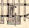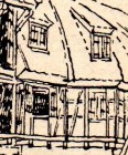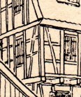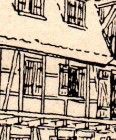 und zeichnet sich durch die einhüftige Ausbildung des Pultdaches aus, das infolge der Unterbringung einer Durchfahrt im Erdgeschosse und des dadurch entstehenden schiefen Grundrisses noch eine Knickung erhalten hat.