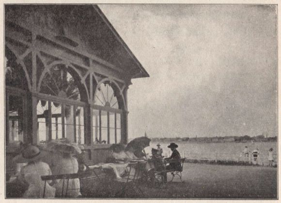 Sandkrugpavillon mit Blick auf die Stadt. |