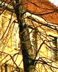 Nicht nur der Hahnenbrunnen fehlt inzwischen, es sind auch deutliche Veränderungen an den Fenstern des Wohlfahrtsgebäudes zu erkennen. |