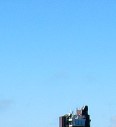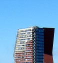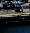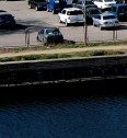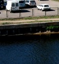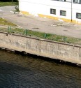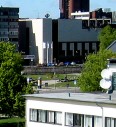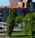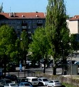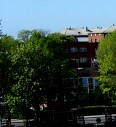 Man blickt vom Wall über den Festungsgraben. Wo die Markthalle stand findet man heute einen Parkplatz. Auch das Hauptzollamt, die Katholische Kirche und die Flachswaage gibt es nicht mehr. Die Silhouette wird heute von den Hochhäusern beim einstigen Neuen Park bestimmt. | |