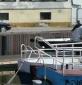 Der teils überdachte Fischmarkt war hier am Festungsgraben, der zugunsten des Gebäudes im Hintergrund und der dahinter verlaufenden Pilies gatvė zum Teil zugeschüttet und somit deutlich kürzer als damals ist.
