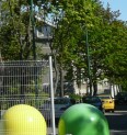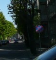 Hier teilte sich die Schlewiesstraße gabelähnlich in die Breite- und die Ferdinandstraße. In dieser Ecke des Parkplatzes im Vordergrund stand das Wohnhaus mit der Adresse Schlewiesstraße 11. Wir blicken geradeaus in die J. Zauerveino gatvė, früher Breitestraße. Nach links ging die Windegasse ab, die heute Kalvos gatvė heißt. |